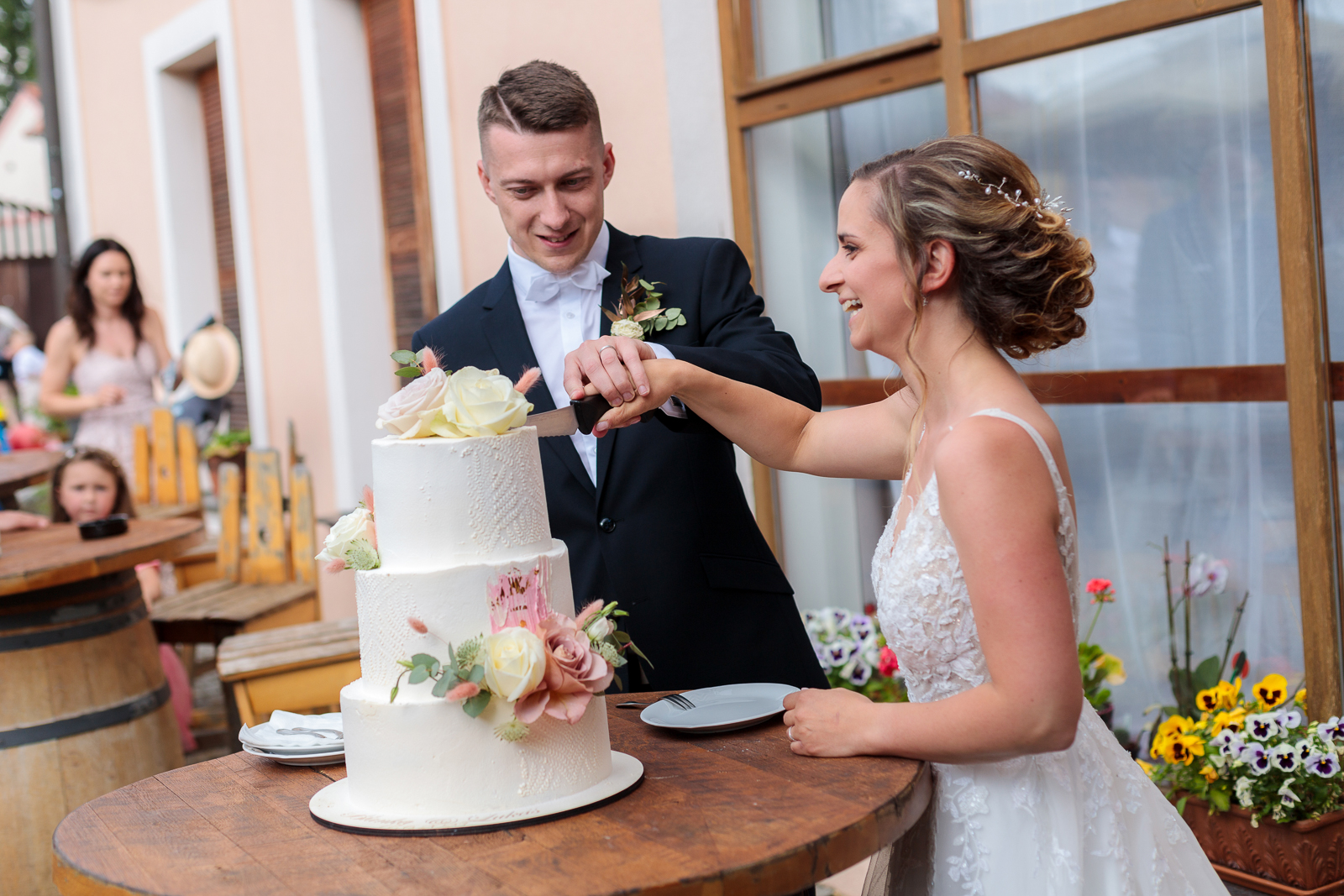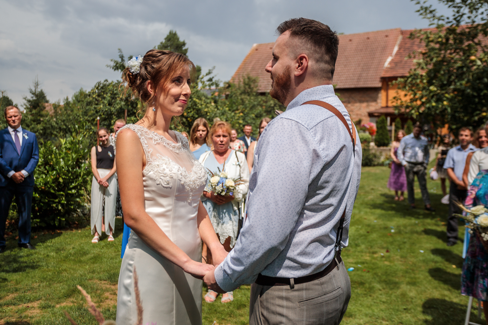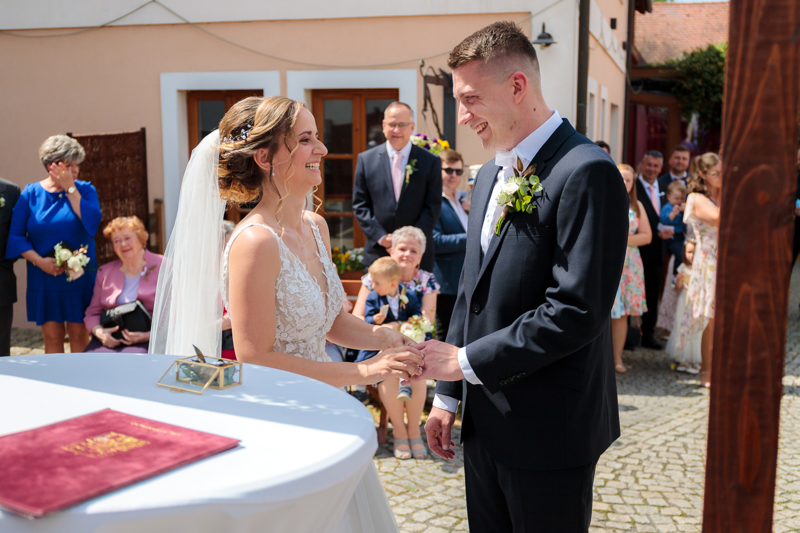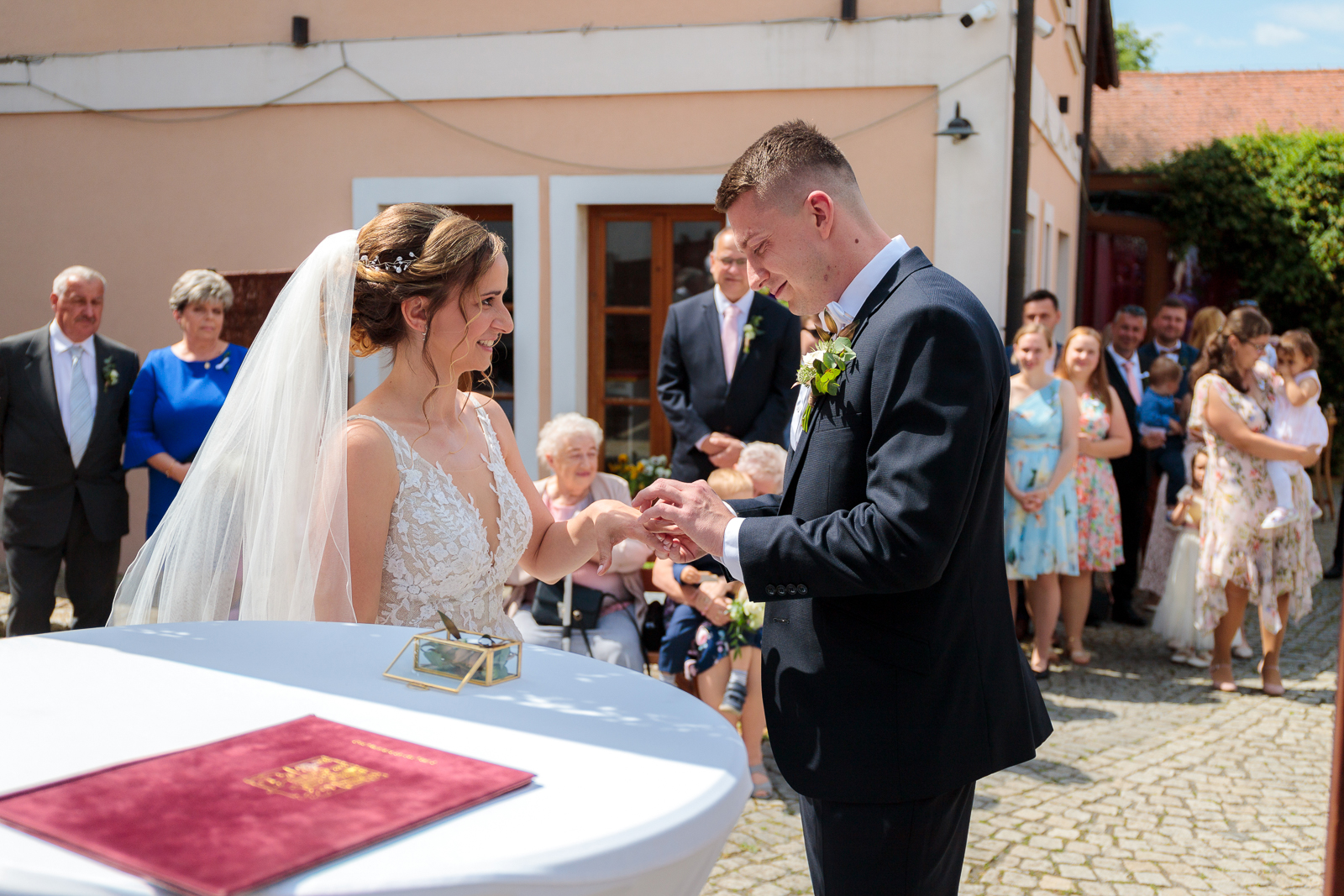 Příběh svatební fotografie se ale může stát jedinou živoucí vzpomínkou na den, kdy jste si řekli své „ano“. Všichni známe ten pocit, když se otevře fotoalbum a vybaví se vzpomínky, láska, štěstí a smích celého svatebního dne. A my pro vás zvěčníme nejen všechno podstatné z obřadu, následné skupinové fotografie a samostatné portréty novomanželů, ale zachytíme pro vás i všechny detaily z příprav nevěsty před obřadem, přes krájení dortu a první společný tanec až po večerní zábavu, zkrátka příběh celého vašeho dne.